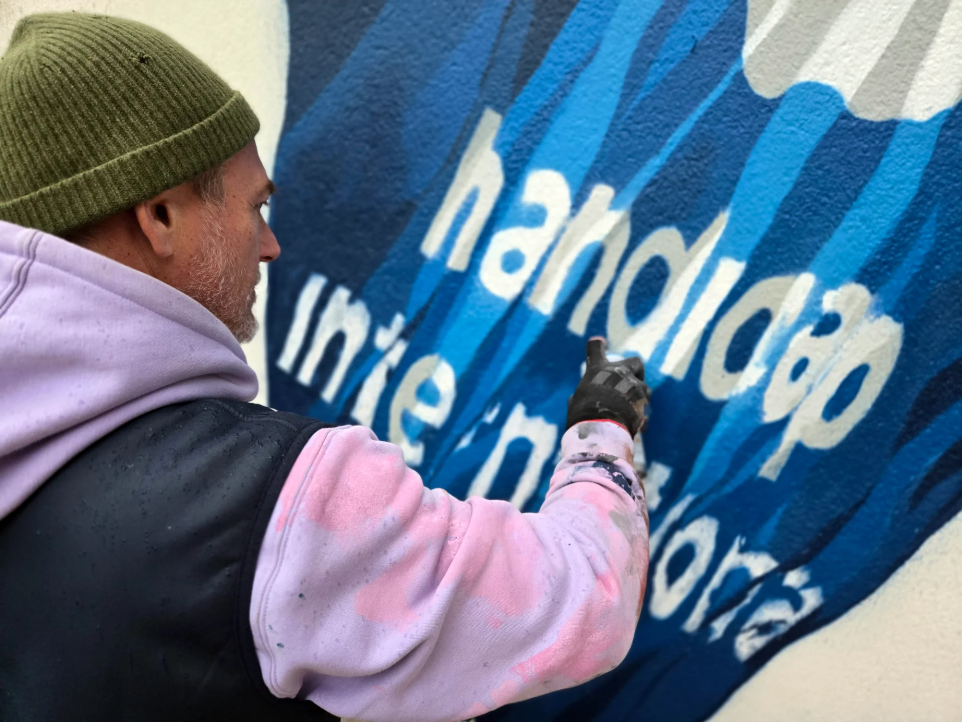 Handicap International et l’artiste @brusk_dmv donnent vie à une création engagée, geste par geste, couleur par couleur.